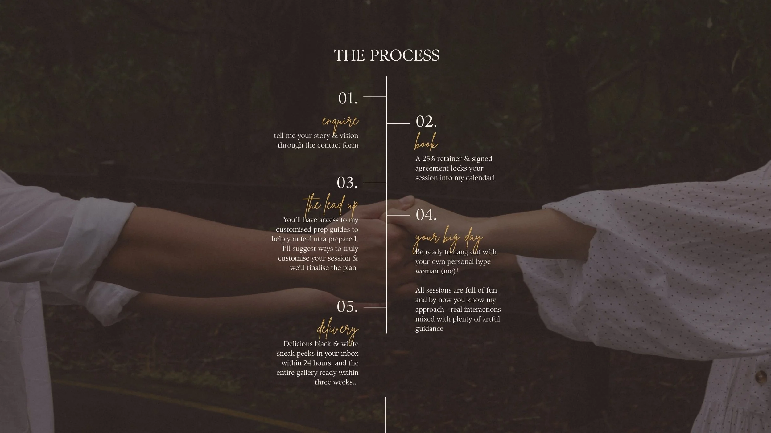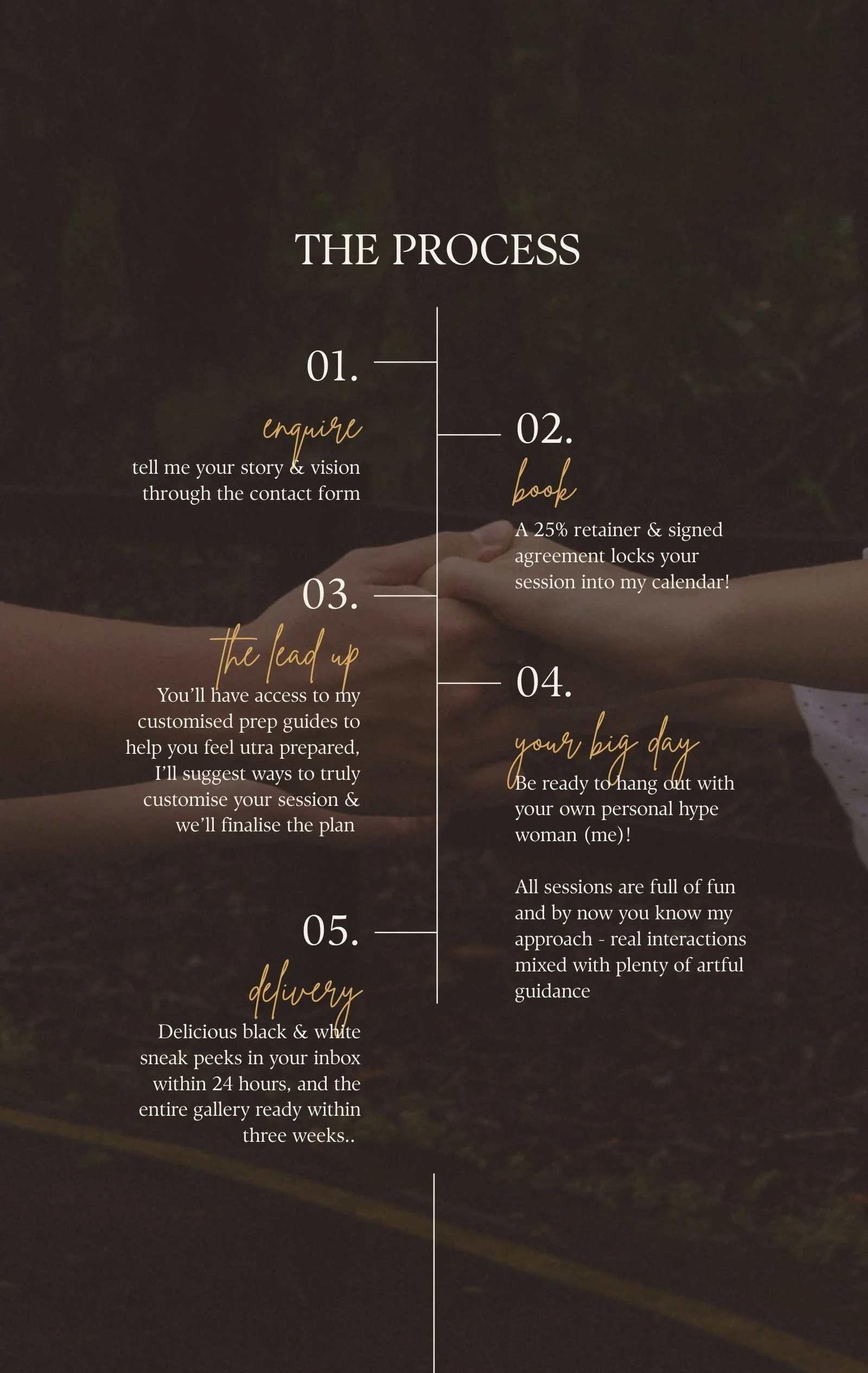 • Absolutely! A 25% non-refundable retainer secures your spot, and from there you can settle the balance in up to four instalments - as long as the full balance is settled two weeks prior to your session.