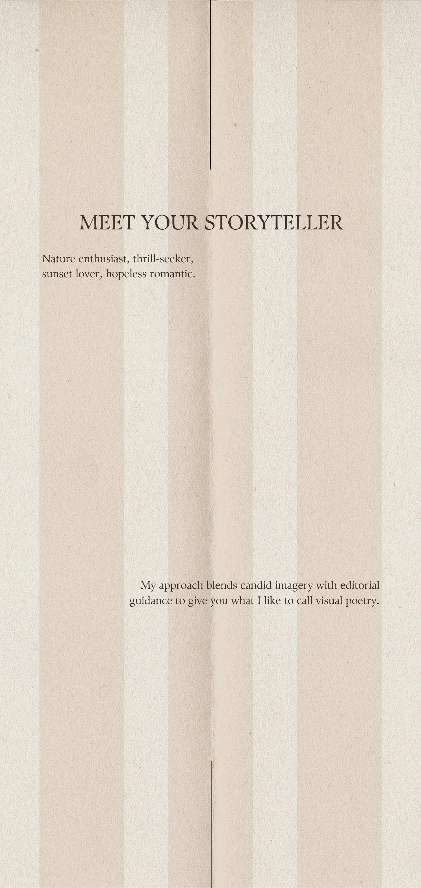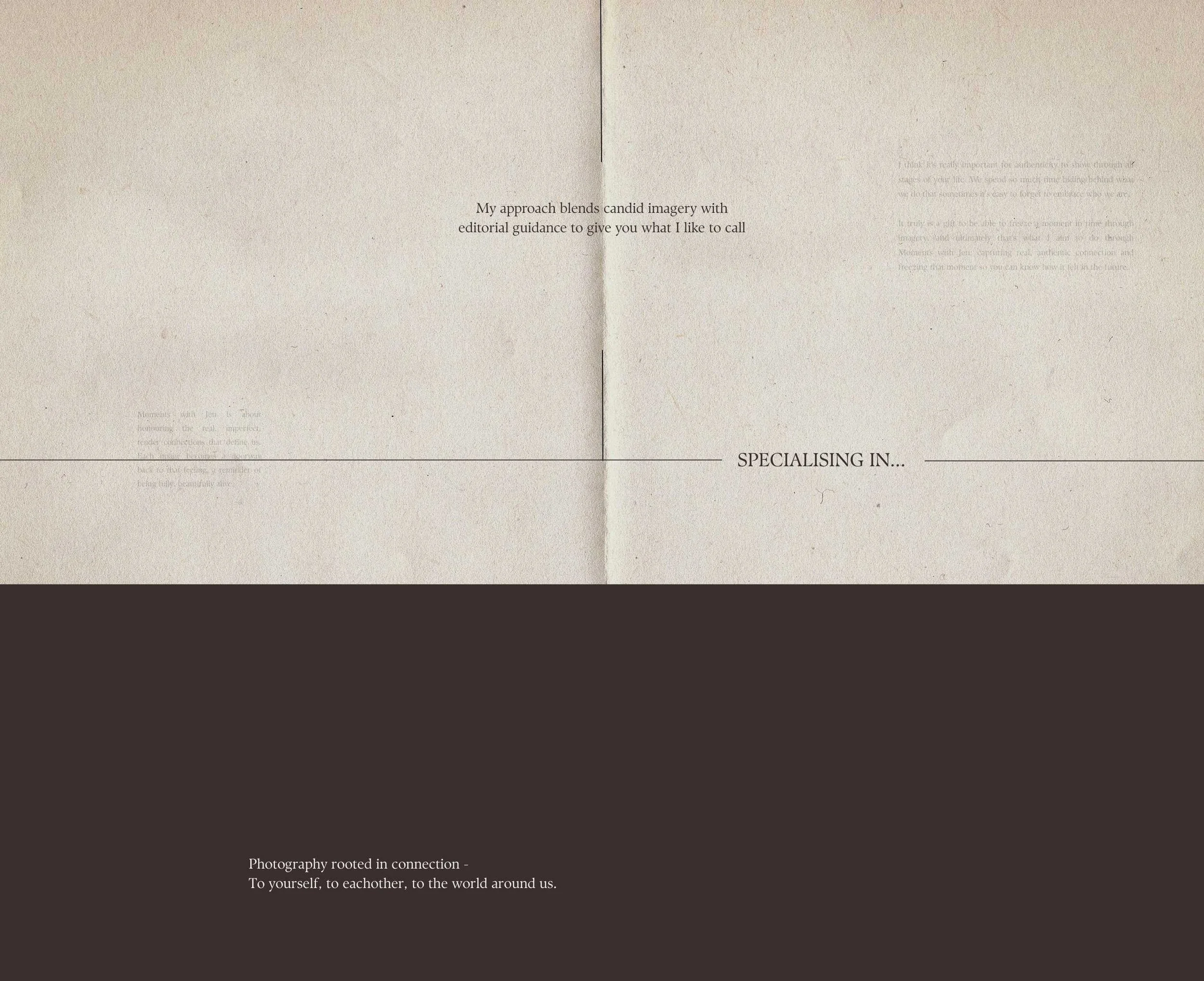 If you happen to wake up with the world’s worst pimple I can make it disappear if you ask - my general rule is if it’ll be there in two weeks, it stays! I’m all about telling stories as they are and capturing moments naturally.